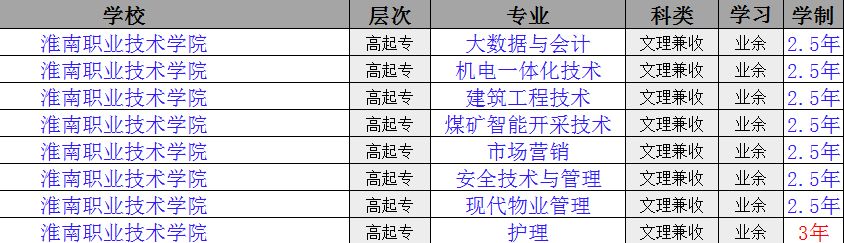 淮南職業技術學院成人高考/函授??茖W歷提供多個招生專業,結合全日制辦學的優勢專業以及社會需求較大的專業類型,開設專業類型多而廣,充分滿足不同從業領域考生的需求。具體招生專業以學校發布的最新招生簡章為準。