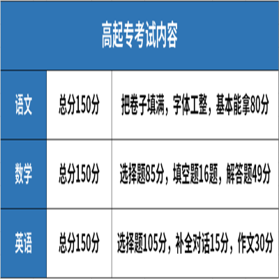 考試科目根據考生報考的層次和專業而定,通常包括語文、數學、外語等基礎課程。具體考試科目和考試內容以學校發布的最新招生簡章為準。