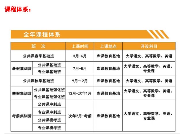 庫課專升本提供了全面、系統的課程體系,以滿足不同學生的學習需求。課程體系包括基礎班、強化班、沖刺班等多種班型,每個班型都有明確的教學目標和課程設置。同時,機構還根據考試的變化和考生的需求,不斷更新和優化課程體系,確保學生能夠獲得最新、最實用的知識和技能。