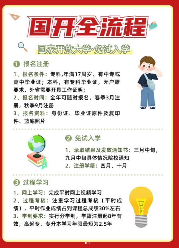 學籍注冊:學生經學習中心、分部、國家開放大學三級審核通過后,可注冊入學,并獲得入學通知書。