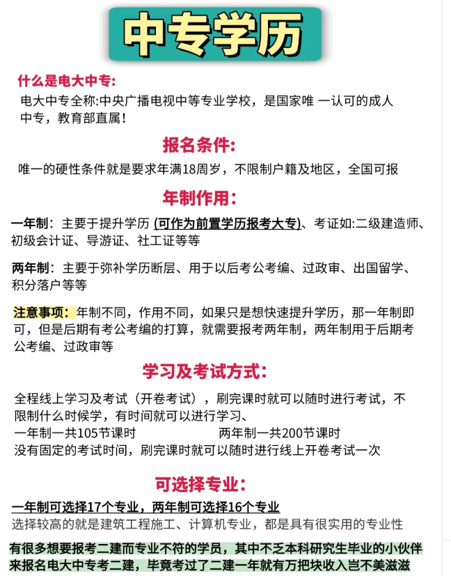 畢業證書由中央廣播電視中等專業學校頒發,具有國家承認的中專學歷。