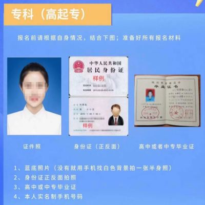 材料:考生需準備證件照、學信網學歷認證報告、身份證等報名材料。