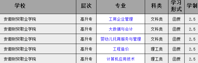 招生專業有工商企業管理,大數據與會計,嬰幼兒托育服務與管理,工程造價,計算機應用技術等等。