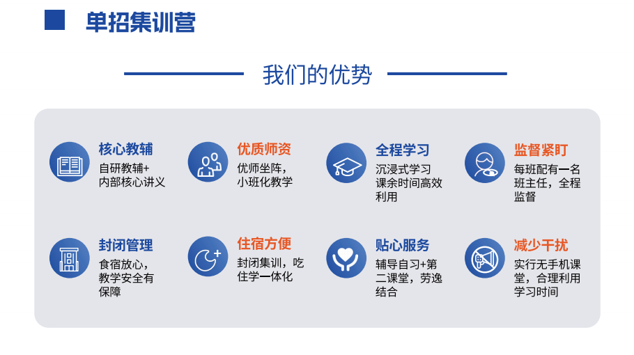 集訓營擁有一支高水平的師資隊伍,他們不僅具備深厚的學科背景和豐富的教學經驗,還熟悉單招考試的命題規律和考試動態。