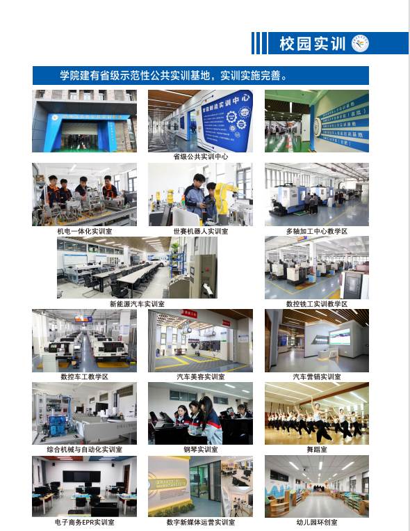 學院下設多個系部,涵蓋多個專業領域,包括但不限于現代制造系、汽車工程系、學前教育系、經濟與信息化系等。學院擁有現代化的教學樓、實訓樓、學生公寓和各類體育設施,同時建有智能制造、汽車維修、機電一體化、工業機器人等各類實訓室76個,能夠滿足學生的實踐學習需求。