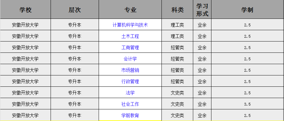安徽開放大學成人高考專升本開設了多個熱門專業,包括物流管理、市場營銷、工商管理、會計、法律事務、計算機應用技術等,涵蓋了經濟、管理、法學、理學、工學等多個學科領域??忌筛鶕约旱呐d趣和職業規劃選擇合適的專業。