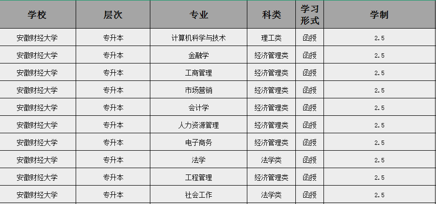 2025年安徽財經大學成人高考招生專業涵蓋了多個領域,包括但不限于: