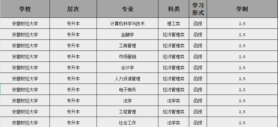 2025年安徽財經大學成人高考專升本招生專業涵蓋了多個領域,包括但不限于: