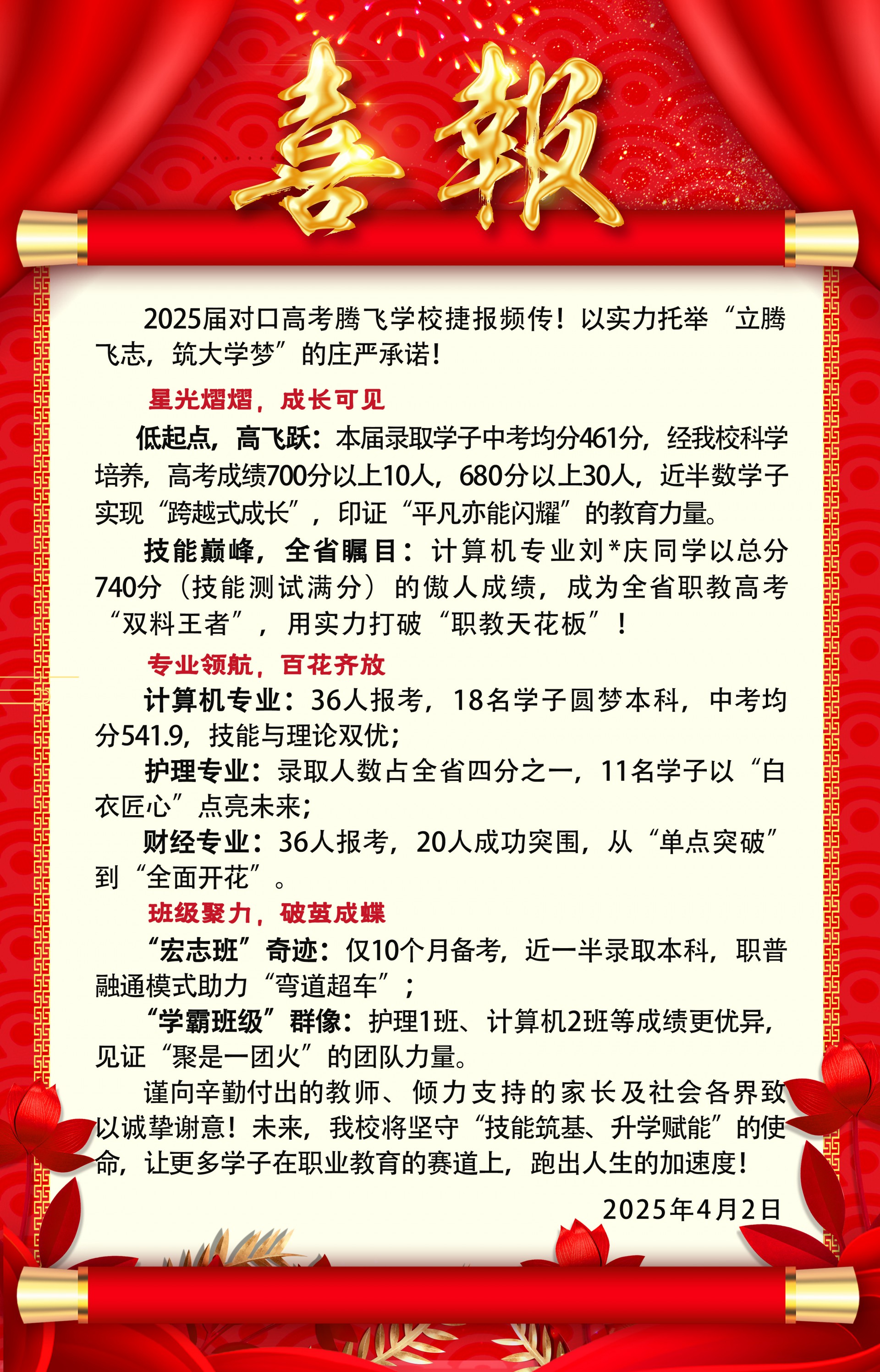 合肥騰飛學校:該校高考班以“文化課+專業技能”雙軌培養模式著稱,2024年本科上線率達36%,??粕龑W率超90%。優勢包括: