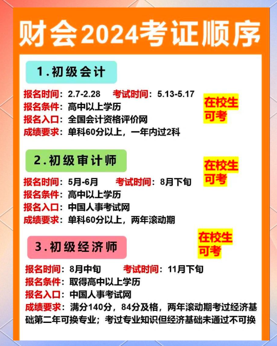 考生需具備一定的學歷和從事會計工作的年限,如大學??茖W歷需從事會計工作滿5年,大學本科學歷或學士學位需從事會計工作滿4年等。