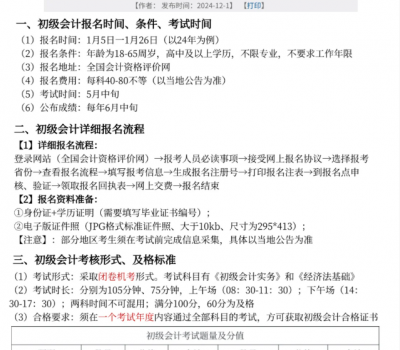 繼續教育:部分省市可能要求考生具有相應的會計繼續教育記錄年限。例如,本科學歷報考可能至少需完成3年會計繼續教育,大專學歷至少4年。